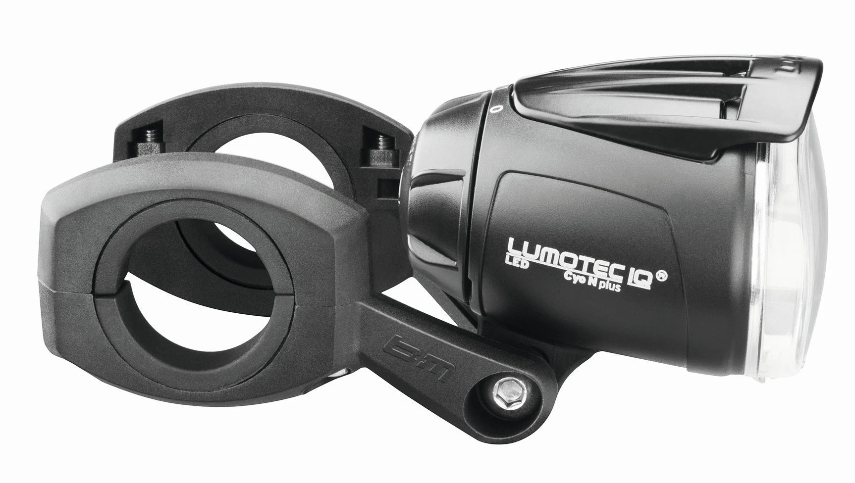 Mit dem zweiarmigen Halter können Dynamo-Scheinwerfer platzsparend an der Lenkermitte befestigt werden. Auch für E-Bikes ideal: Die oberen Schellen des Halters können durch die Halterung von Bosch-Systemdisplays ersetzt werden, so dass Steuerung und Licht zusammengebracht werden.