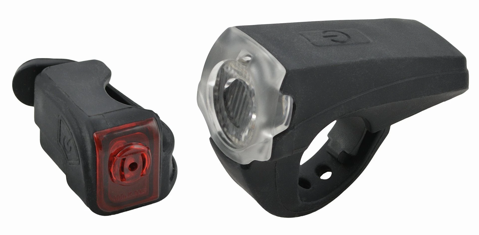 Frontlicht Silikon mit integriertem Lenkerhalter und 20 Lux LED. Mit Lithiumakku und USB Ladebuchse. Rücklicht Silikon mit einer LED und eingebautem Akku und USB Ladebuchse. Im Geltungsbereich der StVZO zugelassen