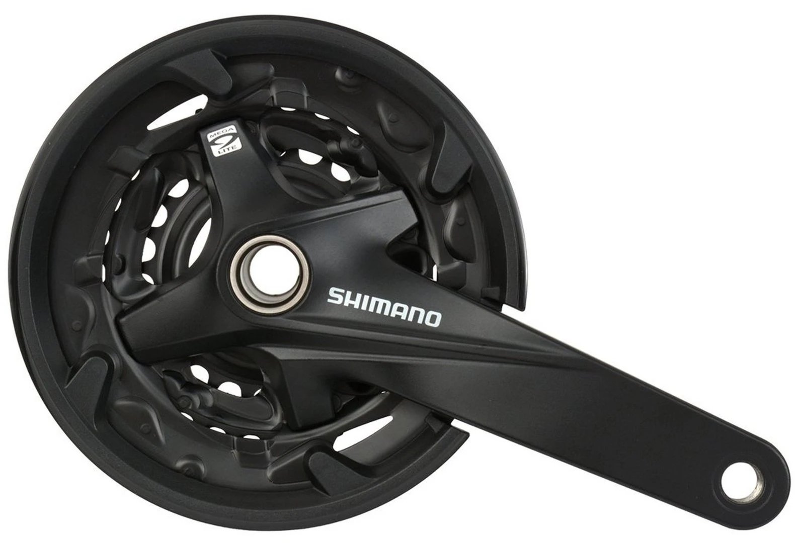 Die Kurbelgarnitur SHIMANO FC-MT200 ist für 3×9-Gang-MTB-Antriebe konstruiert. Die HYPERDRIVE-Technologie sorgt für leichtgängiges und präzises Schalten.